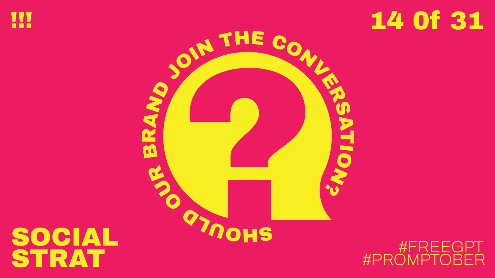 Ask Should My Brand Join In? and see what the GPT advises. Explore the rest of the Promptober Six Pack at harbinger.ai/promptober and keep your feed fresh.